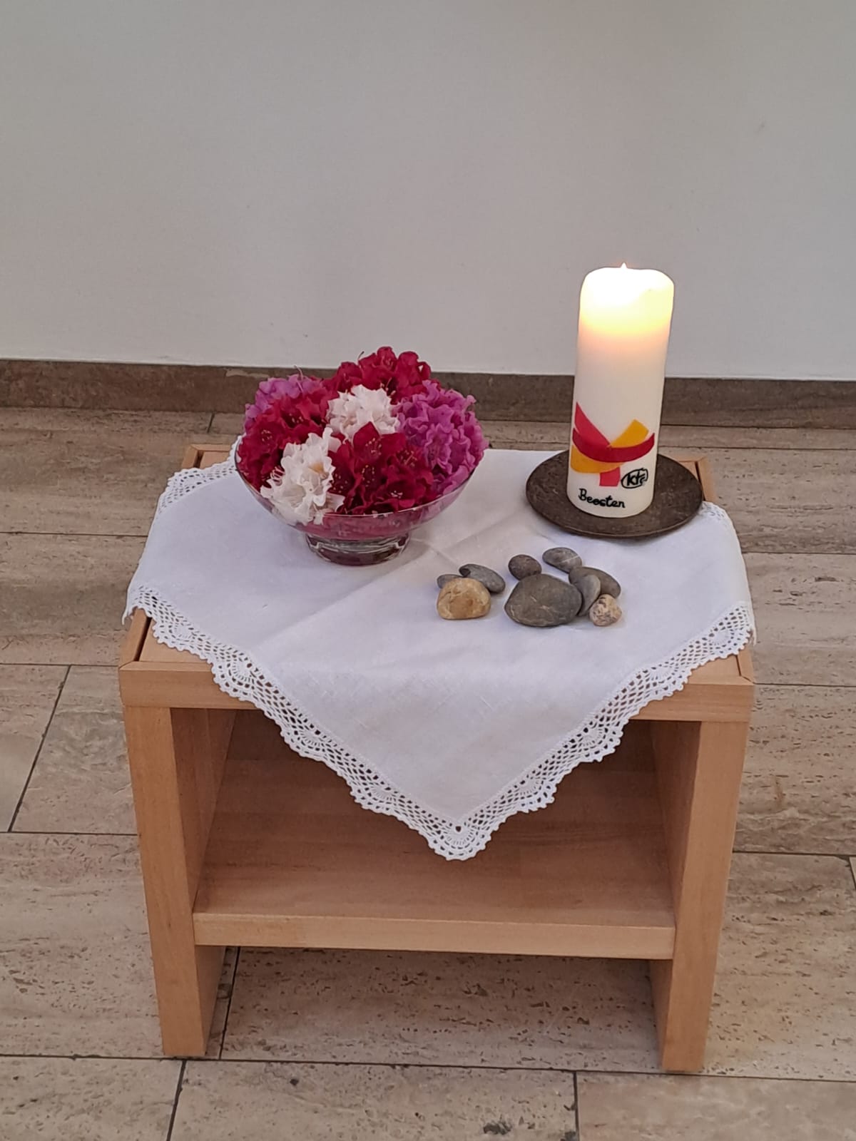 Die inhaltliche Gestaltung übernahm die Miriam-Gruppe und wurde von 3 Musikerinnen aus dem Musikteam begleitet. Ca. 16 Frauen nahmen teil und waren, nach den drei Stationen vom Friedhof bis zur Kirche, anschließend zum gemütlichen Ausklang bei Brot und Wein ins Michaelhaus eingeladen. Herzlichen Dank an alle engagierten Beteiligten für den nachösterlichen, meditativen Abend.