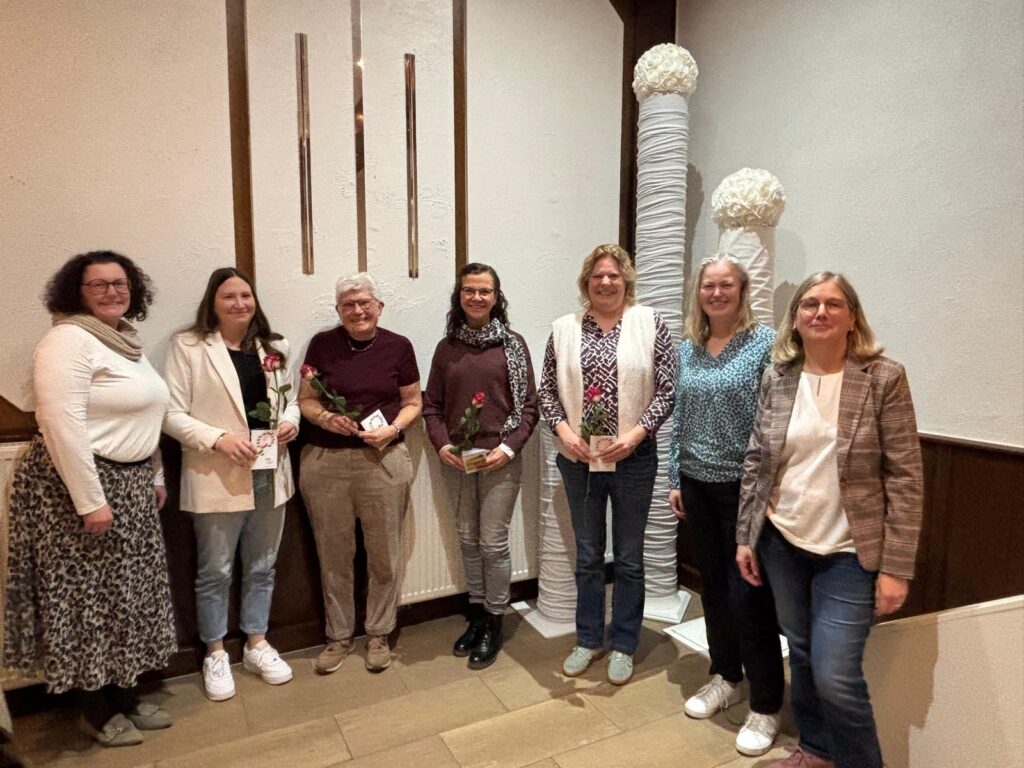 Zehn neue Mitglieder wurden in die kfd Beesten aufgenommen. Zudem wurden zahlreiche Frauen für ihre treuen Ehrenamtsdienste geehrt. Ein besonderer Dank für ihr Engagement galt den Bezirksfrauen Anni Herbers (20 Jahre), Annette Garmann und Marlies Weßling (je 10 Jahre).