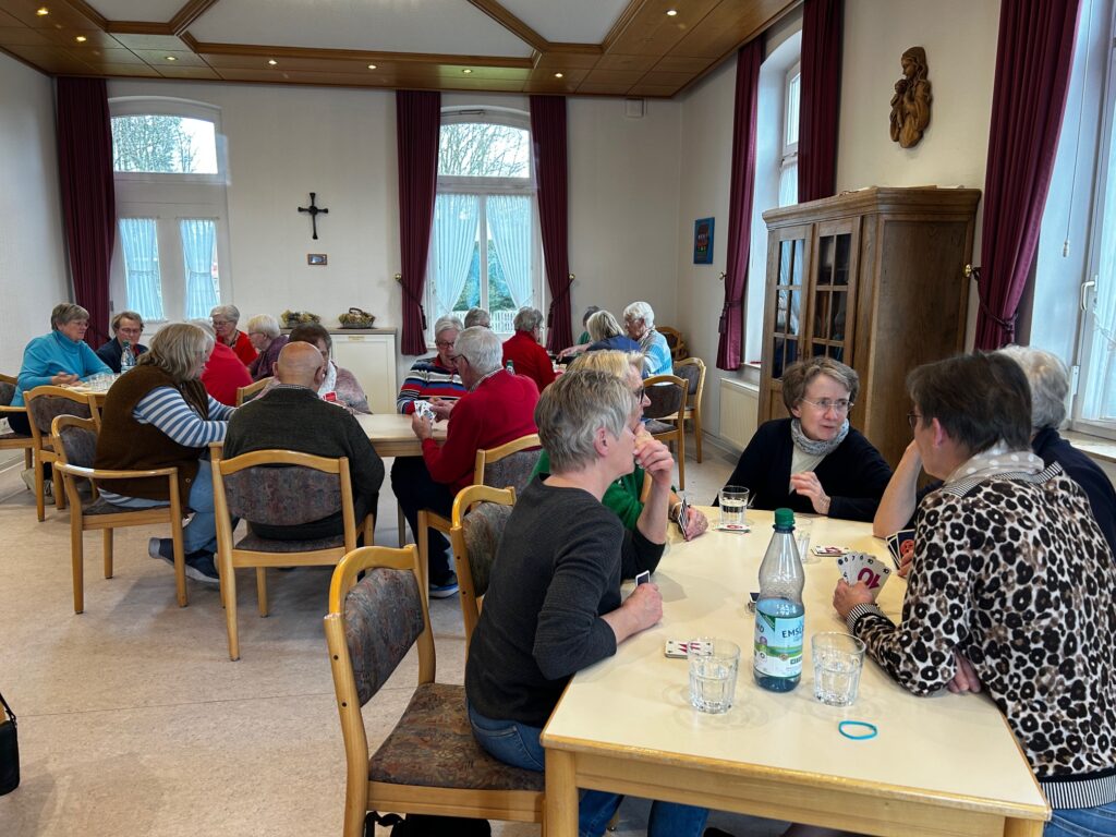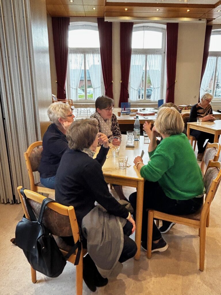 Der erste offene Spielenachmittag der kfd Beesten Ü65 war ein voller Erfolg und stieß auf eine tolle Resonanz. Ein engagiertes ORGA-Team hatte den Nachmittag vorbereitet. Nach dem Start mit Kaffee, Tee und Kuchen bildeten sich sechs motivierte Spielteams, die mit viel Freude und Begeisterung dabei waren.